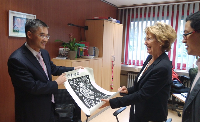 六高中的游学团受到了极高的重视和热情的接待,勒沃库森市市长百忙之中抽空接见我们。高校长在接待会议上表达了他对两校交流的美好愿望,希望通过这种交流项目让两国学校和学生了解对方的文化和优点,彼此取长补短,共同提高。