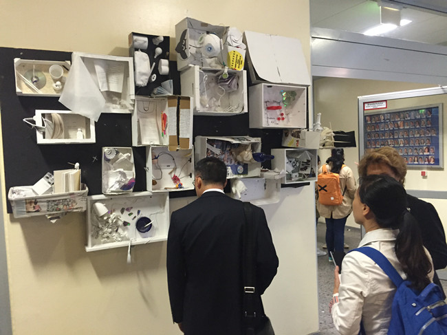 接下来的几天我们更多地了解和体验了德国学生的学习生活。经学校老师的介绍,我们了解到大厅里看似简单的陈设,实则都与学生的学习生活息息相关。比如有一面是毕业学生的艺术作品展示墙,每一副作品表达了学生对学校,生活,未来等方面的想法,作品看似不够精致,却充满想象力和创造力。还有上面提到的留言板,其实每一期都有专门的社会性话题,学生可以把自己的观点想法写在贴纸上,这样的设计能让学生更多地融入和关注社会,思考现实问题并试图找到一些答案。