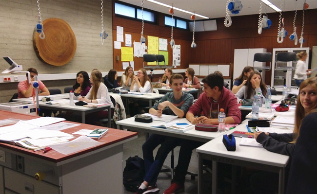 首先要解释什么叫文理中学?德国的中学教育从5年级开始,学生进入不同层次的学校进行学习。成绩次好或一般的学生会进入相当于我们这的职校学习。而成绩较好的学生则通常选择文理中学就读,这是进入高等教育的必经之路。我们所游学的这所文理中学正是当地较大规模的学校,拥有学生1200多名,学生生源相对较好,很多都是拜耳公司的职员子女。