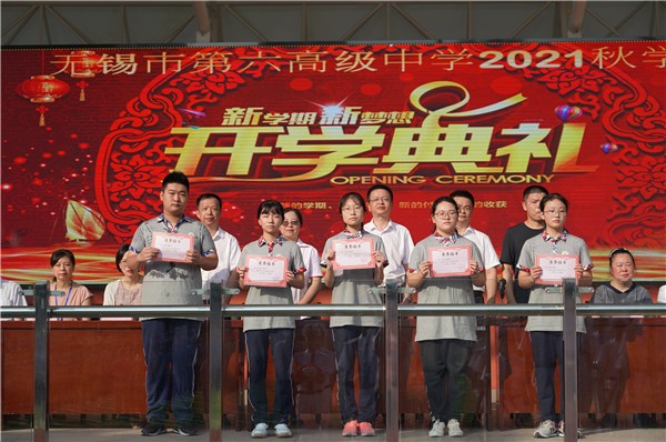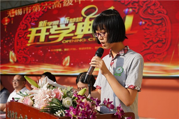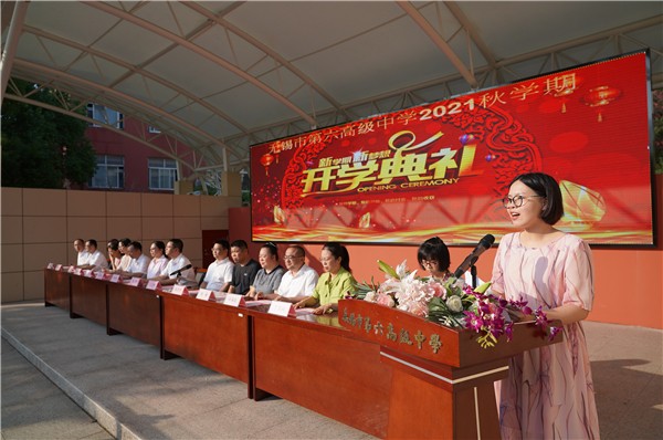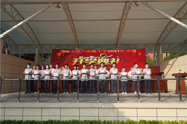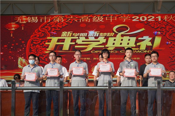 初升的旭日照耀着崭新的起点,9月1日的清晨,无锡六高中举行了2021年秋学期开学典礼。伴着雄壮嘹亮的国歌声,学校仪仗队升起了鲜艳的五星红旗,全校师生精神饱满面向国旗行礼。