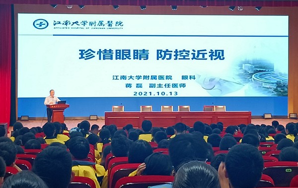 10月13日下午,我校新报告厅座无虚席。来自江南大学附属医院眼科的蒋磊副主任医师为高一的全体学生带来了一场题为《珍惜眼睛,防控近视》的报告。