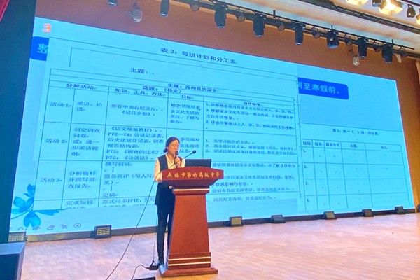 我校语文学科组由高二年级备课组长孙卓君老师代表汇报发言,孙老师以三新背景下生动的语文实践为主题,以原高一年级丰富的学习成果为素材,从“新特征”、“新定位”、“新尝试”三个维度切入,对新形势下的语文教学生态与特征做了全面而深刻的剖析。孙老师的整个报告思维缜密、说理严谨,充分展现了语文学科组在三新环境下的专业姿态与高站位理念;其异彩多元、生动活泼的学生活动与成果展示,更是实力呈现了语文学科在新形势下专注学生核心素养与综合能力的价值追求与积极实践,为全校教师做了一次专业且生动的交流分享。