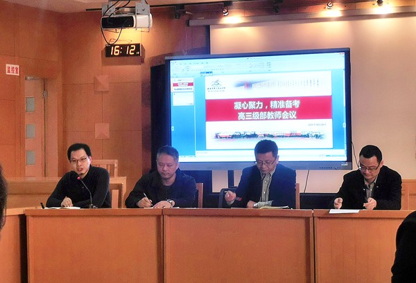 教务处黄主任对之前的月考情况、期中考试前教学安排做了简要分析和说明,并为高三的教学提供了一些建议。他提出高三备考有三个方面的经验我们需要学习:同心同德、精细管理;加强研究、精细备课;分析学情、巩固知识,重点就教学上的两个方面为高三老师们分享了自己的认识与思考。