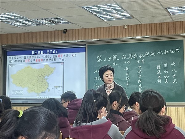 强燕老师的课题是《从局部抗战到全面抗战》。聚焦历史学科核心素养,将时空观念、历史解释、家国情怀渗透于课堂教学之中。史料运用新且灵活,合作探究有深度、有广度。与会专家给予较高的评价:对课标理解通透,材料丰富,语言优美,有激情且重点突出,充分挖掘教学内容的育人价值。