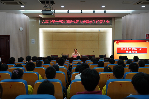 最后,全体起立,唱响团歌,在激昂的旋律中聆听着使命的召唤。相信在上级党政领导的关怀下,在新一届团委、学生会的领导下,六高中学子必能行动热情转化为青春建功的成果。梦在前方,路在脚下;请党放心,强国有我!