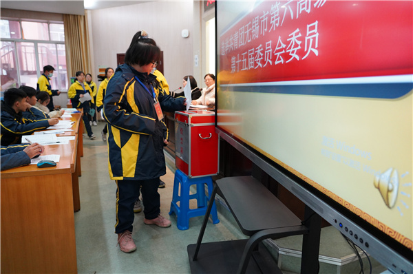 总监票人杨刘灵同学宣布选举结果。