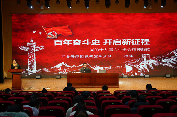 徐主任分会议主要内容、决议核心要义、学习贯彻落实三方面,对党的十九届六中全会的重要历史意义、地位和作用进行了解读,用数字概括核心要义,对党的十九届六中全会精神进行了深入浅出的阐释。