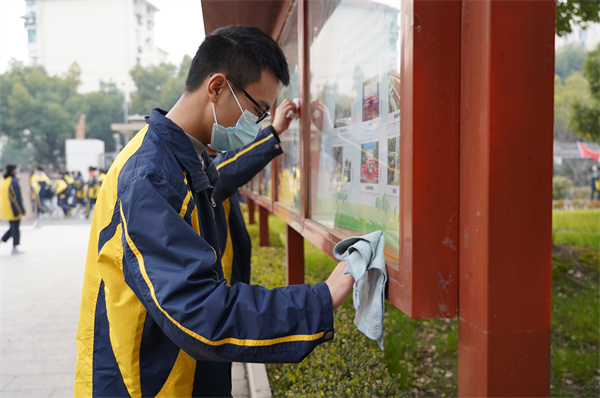 入团不是一句口号,入团不能流于表面,而要深入实践,从自身做起,从身边小事做起。为丰富“青年团校”的授课形式,强化系统授课成果,团委联合德育处策划了校内“环保小卫士”志愿服务活动。“雷锋精神”再出发,春风三月见行动,在一叶叶清扫、一处处擦拭的过程中,入团积极分子们明确了共青团的先锋作用,也诠释了青春建功的朴实内涵。