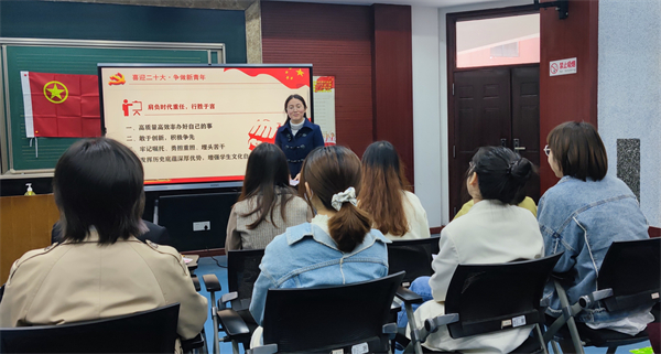 为党育人,为国育才,落实立德树人根本任务,是六高中教师的自觉追求。根据习近平总书记在人民大学座谈会上的讲话精神,六高中教工团支部于4月29日举办“喜迎二十大,争做新青年”主题团日活动,号召青年教师砥砺奋进、勇于担当,以奋发向上的精神状态迎接党的二十大胜利召开。教工团员代表臧金泥老师、刘晶老师上台发言交流,全体教工团员精心设计“五四”主题明信片,殷切寄语学生“后浪”,争做复兴栋梁、强国先锋。