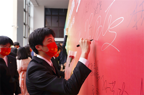 在班主任的带领下,一位位学生,精神抖擞,神采飞扬的跨过成人门,在成人门下留下了青春的足迹,在签名墙上留下了独属于个性签名。跨过成人门,迎接属于自己的美好未来。