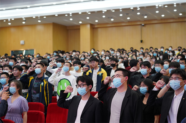 随后,全体高三学生在华健校长以及各班领誓员的带领之下,高举右拳庄严宣誓:“我立志成为有理性、有道德、有文化、有纪律的社会主义公民……”铿锵有力,掷地有声,让我们看到了青春的样子。