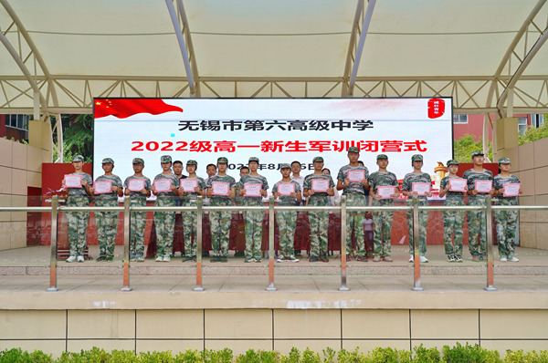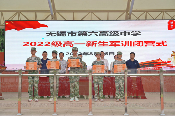 8月26日下午,习习凉风终结了酷热,无锡市第六高级中学在操场举行2022级新生军训闭营仪式暨表彰大会。