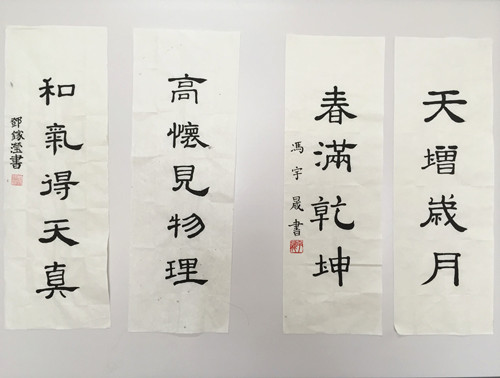 此次书法展是高一学生在美术课堂的书法习作展示,同学们把学习到的隶书书体用多种作品形式进行创作。此次展示活动丰富了校园文化生活,给同学们提供了一个交流书法的平台,创造了展现自我的机会。