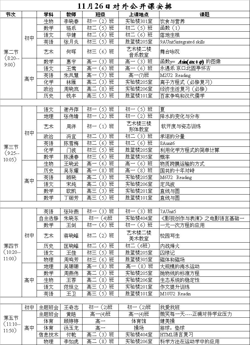 6、第五节课安排各学科在崇宁校区进行评课活动(召集人、评课地点详见公开课安排表),欢迎来宾参与。