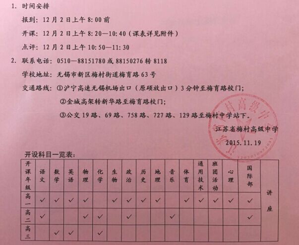 江苏省梅村高级中学将于
