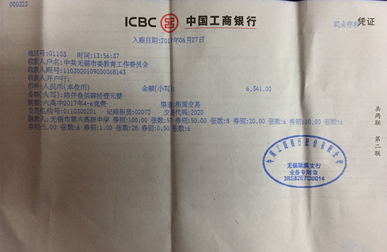 2017年4-6月党费已全额上交中共无锡市委教育工作委员会账户,现公示如下: