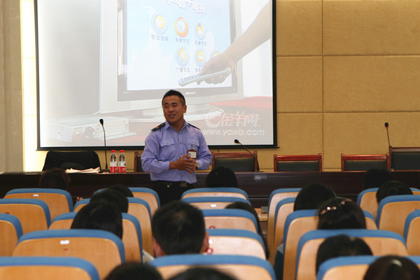 朱教官用大量的图片文字资料向老师们讲述了火灾爆炸事故的惨痛教训,在我们生活中也有很多不在意的安全死角需要我们引起重视,比如:插满插头的拖线板,通电的手机充电器,汽车后备箱中过期的灭火器等等。