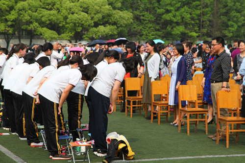高三成人礼,又一次见证学生们离别前的生动画面,内心依然感动:尤其当学生们集体向老师鞠躬致谢时;当课代表跑过来献花时;当作为临时家长给学生带手链时,当学生们换上正装四处找我合影时……,平时的辛苦与压力顿时忘却,更多是不舍与感慨! (武冰老师)