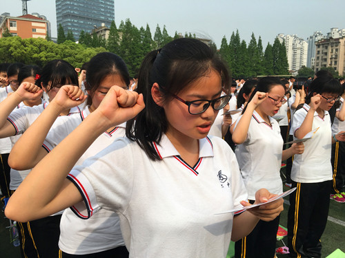 随着鲜艳的五星红旗冉冉升起,韦校长热情给全体高三学子致辞:人的成长,第一次成长是在发现自己不是世界中心的时候;第二次是发现有的事,无论自己怎么努力,依然无法改变结局,自己无能为力的时候;第三次是明知道事情结局难以改变,但依然愿意竭尽全力去改变。成长中的少年们,你们风华正茂,这整片的天空都属于你们,所以去驰骋,去努力,全力以赴,无怨无尤。