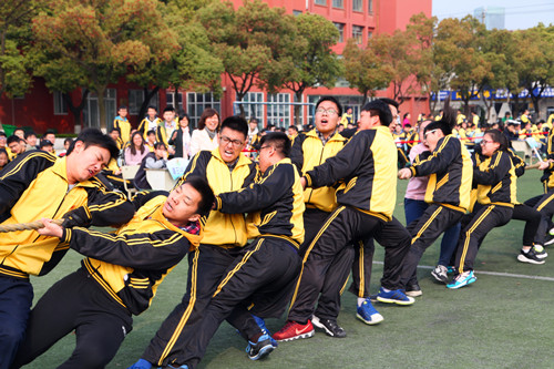 团体项目的拔河比赛、团结一心(两分钟跳长绳)、爱心传递(持球迎面接力)、心心相印(后背夹球迎面接力)、齐心协力(小火车竞速)等是一次班级集体风貌和团队精神的展示,同学们相互鼓励,相互协作,心往一处想,劲往一处使,充分发挥了顽强拼搏、团结互助的竞赛精神,也收获了合作的快乐。