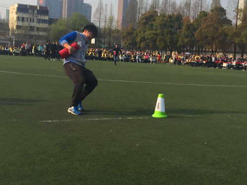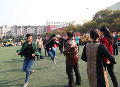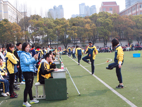 个人阳光吉尼斯项目的男子引体向上、女子一分钟仰卧起坐、立定跳远、一分钟跳绳(双摇)、一分钟踢毽(盘踢)则吸引了各路好手一展身手。在班级同学此起彼伏的加油、助威、打气、呐喊声中,选手们各展所长,纷纷使出自己的看家本领,将比赛进程推向一个又一个高潮。