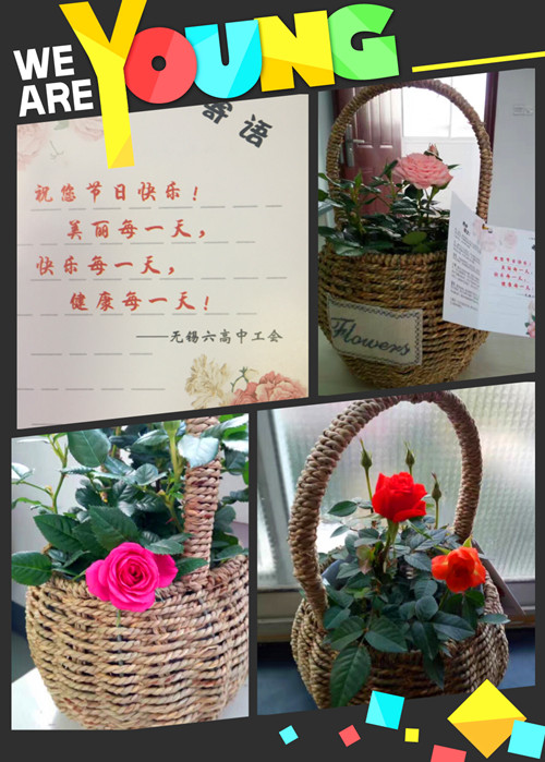 纪念“三八”国际劳动妇女节107周年之际,无锡六高中工会开展了一系列“巾帼建功 美在校园” 为主题的活动,向女同胞们送上了节日的祝福,希望女教职工勤于学习,完善自我,提升素质,做有理想信念、有道德情操、有扎实知识、有仁爱之心的好老师。