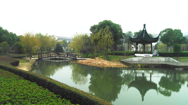 在木渎高级中学教科室主任钱主任的指引下,我们漫步在这所美丽的校园内。一字楼、曲院、 长廊,是江南常见的那种黑瓦粉墙、朴素庄重的仿古式建筑。希文路,景亭路……各个历史名人又给这座学校增添了历史底蕴。依山而建又很有诗情画意的教学楼,在冬色中平添了几分雅致。屋后是山,屋前是池。池边有蓊蓊郁郁的大树,大树下是敦厚方正的长条石凳。山,不高;这里的山上有郁郁葱葱的嘉木。池,不大;这里的池上有闪闪灼灼的涟漪。仁者乐山,智者乐水。山明水秀,动静相得,凝重与灵动相互映衬,这是山水画的至美境界。诚然,能在这里就读,是莘莘学子的荣幸。