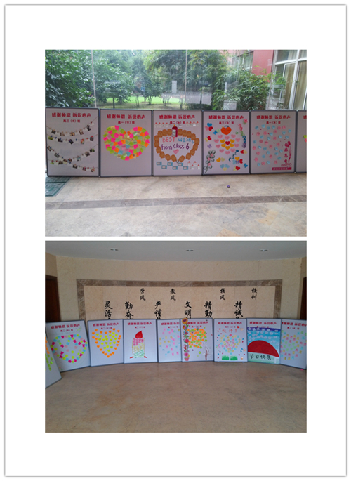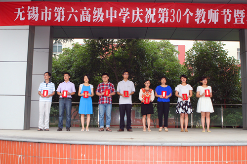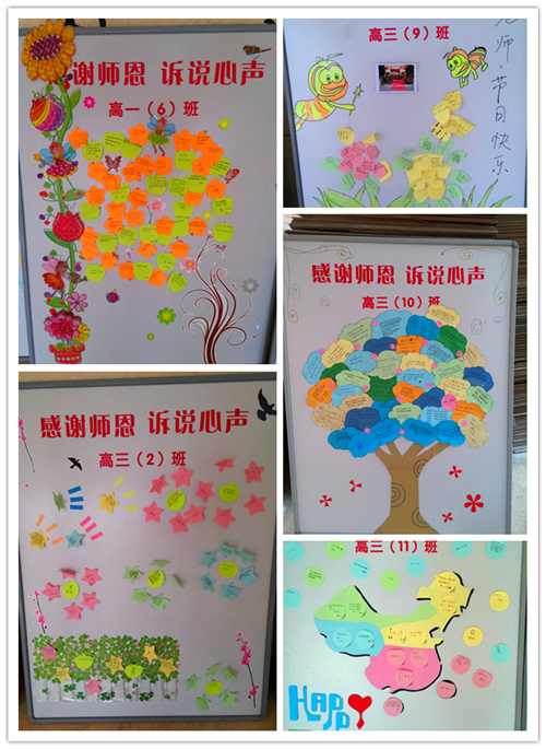 在这个崇高的节日里,为了体现同学们对老师的诚挚的祝福感激之情,加深师生之间的情感,德育处、团委向全体学生发起倡议,号召全校同学以班级为单位,通过心意贴、心意卡等各种形式向全体教师祝贺教师节。校领导班子也开展了送祝福活动,9月10日一早,校领导在校门口列队迎候全校教师,学生代表为辛勤的教师献上一枝芳香的百合花,并送上一句真诚的祝福。简朴而隆重的表彰大会上,高惠洪校长代表学校党政领导向辛勤耕耘在学校各条战线,为学校发展作出了积极贡献的全校教师致以节日的问候;向受表彰的各位老师表示热烈的祝贺。老师们在欢度节日的同时,更明确了应自省自励、奋发进取的治学态度。用爱心浇灌花朵,用双手播种希望,用智慧创造未来。校成蹊广播站也为教师节举办了一次感谢师恩的专题广播。