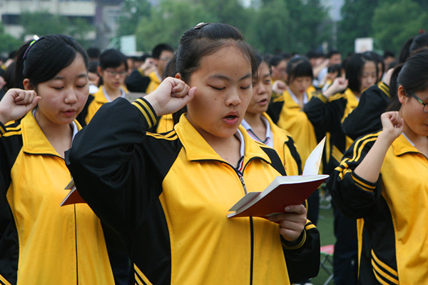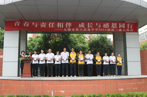 5月18日下午,六中校园里一片青春的热浪在翻滚。2014届高三学子和他们的家长一起参加了庄严神圣的成人仪式典礼。