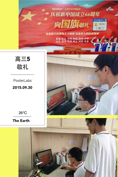 我们向国旗敬礼,让国旗的精神渗透入我们的血脉;我们朝国旗致意,让道德与文化的传承铭记于心;我们给国旗点赞,让国旗的象征也同样融入我们的心中——六高中高三四班人团结一心,共同进步,为美好的未来努力!