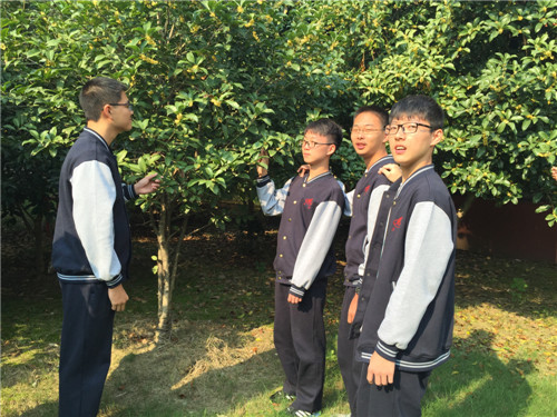 学生们在班主任的带领和统一管理下,在学校正门电子屏下集中,班主任向学生介绍了教务处,总务处,德育处等处室的位置,以及各个年级教学区的分布,了解了雷锋塑像,毓秀亭,成蹊桥的文化来源。在班主任的指引下,学生们还参观了学校的专用教学楼,包括现代化的音乐教室、信息技术教室、微格教室、学生心理健康中心、图书馆、阅览室等。学生们闻着桂花香,在感恩林下留下了他们的足迹。