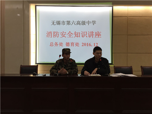 为进一步提高学生的消防安全意识与能力,12月20日中午,我校邀请了无锡市梁溪区消防大队华清路支队周磊教员来校为全体住宿生做了一次消防安全知识讲座,讲座由德育处张枫副主任主持,总务处张剑锋副主任参加。