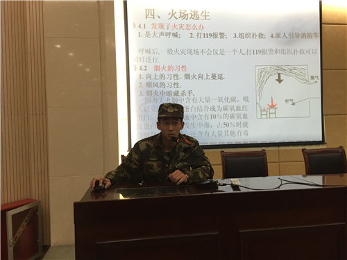 首先,华清支队周教员以案例为教材,理论联系实际,对火灾发生的原因进行了透彻分析。其次,周教员就火灾发生时如何报警、如何现场逃生及注意事项进行了具体讲解。最后,周教员向同学们实际演示了灭火器的正确使用方法。