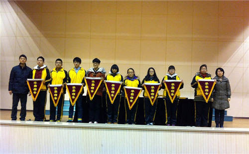 会议一开始,尤老师代表学校祝愿全体住宿生在羊年身体健康,学业有成。王伟主任宣读获得首届“学霸宿舍”学生名单,并为学生颁发“学霸宿舍”锦旗。
