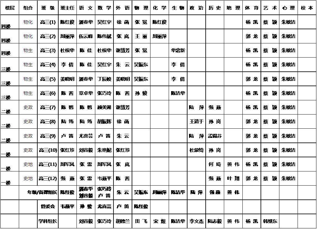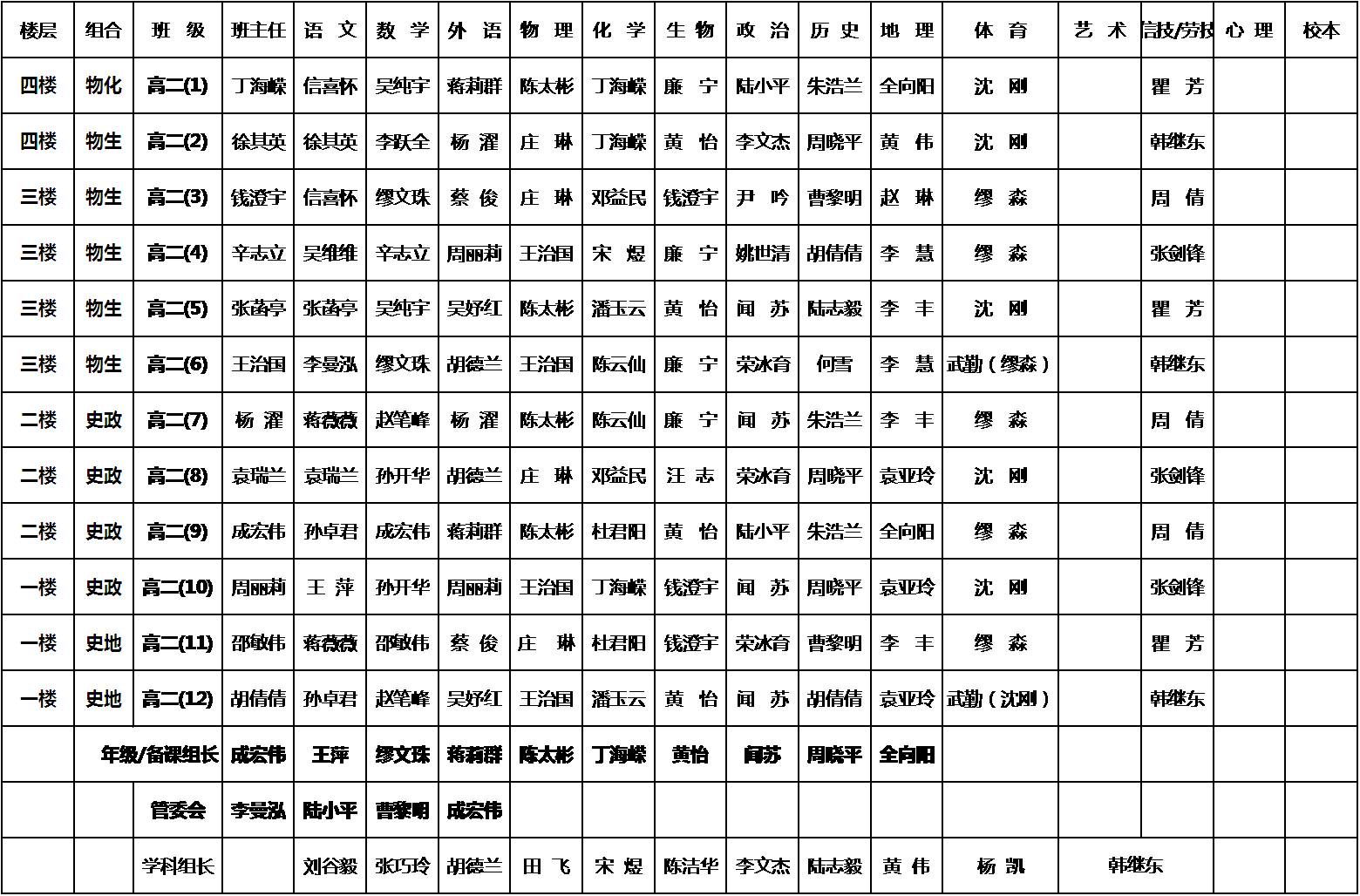 2014~2015学年第一学期课务表