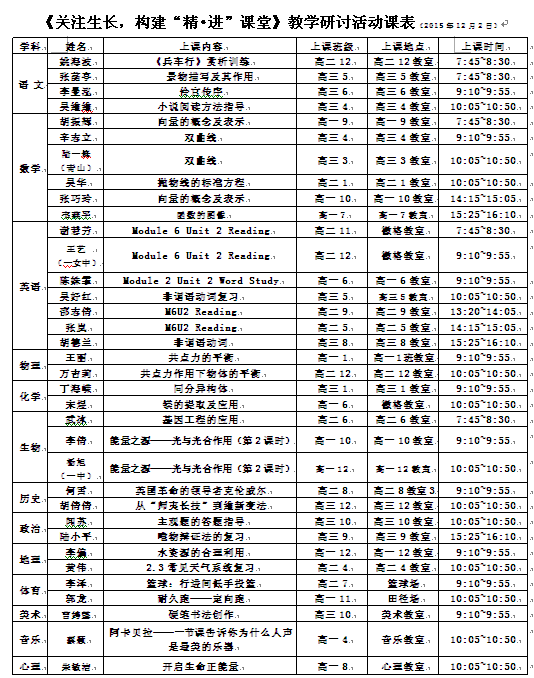 《关注生长,构建“精•进”课堂》教学研讨活动安排