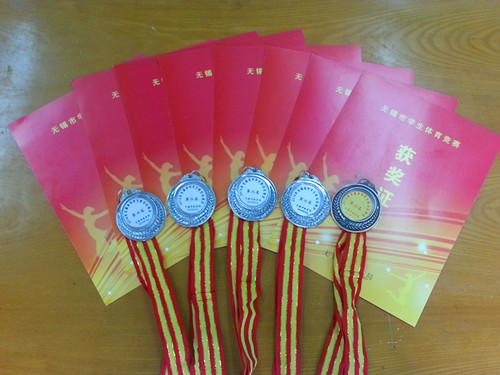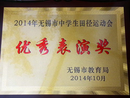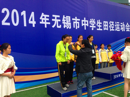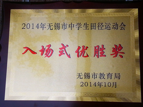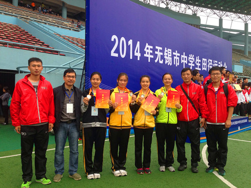 在为期三天的2014年无锡市中学生田径运动会中,经过全体运动员的努力拼搏,我校荣获“入场式优胜奖”、“优秀表演奖”。肖楠、胡静雯、杨瑛颖、罗习睿同学获高中女子4*100米接力第二名,高中女子200米第七名;沈昊同学获高中男子100米第五名,跳远第六名,特向全校师生报喜。 各位运动员、教练、裁判员老师辛苦了!