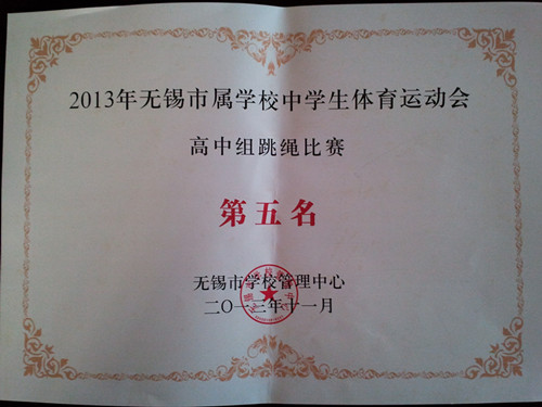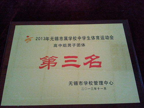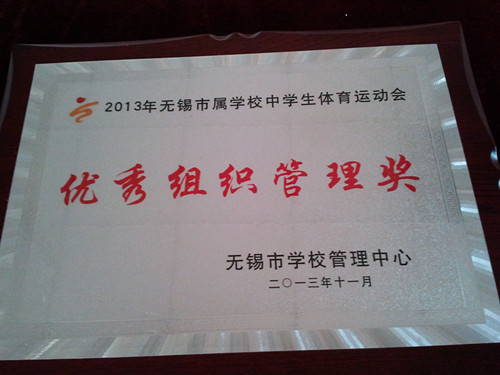 历时三天的2013年无锡市学校管理中心中学生运动会在紧张、激烈、精彩、公正的气氛中,通过全体运动员、教练和裁判员的共同努力、积极参与,圆满结束。本届运动会,我校分别获高中组男子团体总分第三名、高中组女子团体总分第四名、优秀组织管理奖、健身操大赛健身操提高套路二等奖和街舞舞蹈啦啦操二等奖等一系列奖项,这届运动会集中展示了我校学生和教练积极进取、勇攀高峰的精神风貌,我们将珍惜荣誉、再接再厉、再创佳绩!