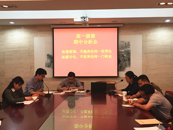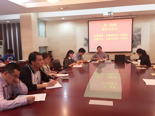 2016年5月4日,高一级部召开了期中考试质量分析会。会议由级部书记周莉萍老师主持,高一全体教师参加了此次会议。