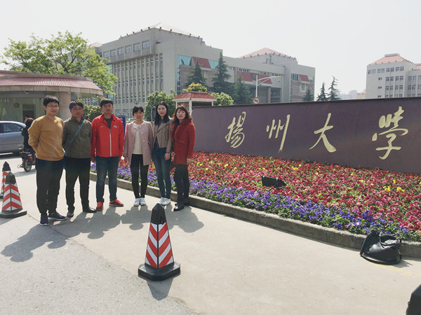 我校老师首先参观了扬子津校区的校容校貌,主要考察了田径场、文体馆等场所,陪同的领导与老师随行介绍了场馆的特点和使用情况。随后学院的高老师介绍了学校的有关情况:扬州大学是江苏省人民政府同教育部共建的江苏省属重点综合性大学,国家首批卓越农林人才教育培养计划改革试点高校,江苏省综合改革试点高校,是中国率先进行合并办学的高校,也被誉为中国高校改革的一面旗帜。办学历史最早可以追溯到1902年由中国近代著名实业家、教育家张謇创建的通州师范学校和通海农学堂(后成为南通学院的一部分)。1992年5月19日经国家教委批准,由扬州师范学院、江苏农学院、扬州工学院、扬州医学院、江苏水利工程专科学校、江苏商业专科学校联合组建。