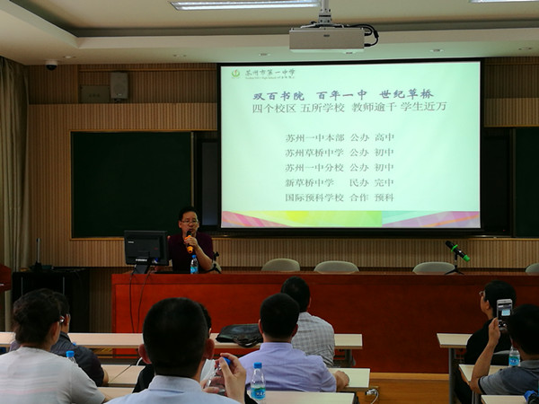 苏州一中,百年老校,曾走出叶圣陶等一大批大师级人物。校园以苏派园林布局,典雅秀美。展览馆、学生社团、教室、活动室、图书馆浑然一体,处处皆是风景,处处皆是学堂。苏州一中副校长,著名特级教师王开东老师带领学员们进行了一次美的漫游,领略了苏一中自然与人文相融、历史与现代辉映的独特风韵。在随后的讲座中,王校长更是向学员们深层次介绍了苏一中人的情怀与追求,让学员们受益良多。