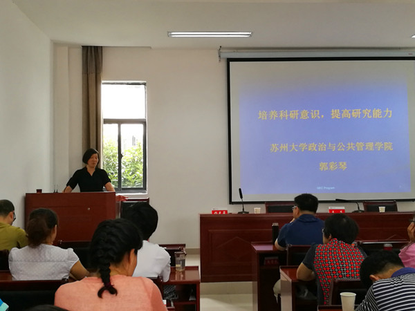 教育学院副院长夏骏教授的《基于影响的教师语言沟通艺术》使学员们领略了语言世界的神奇。特别是夏教授还以太湖石为喻,向学员们揭示了教学的真谛,新奇而实在。