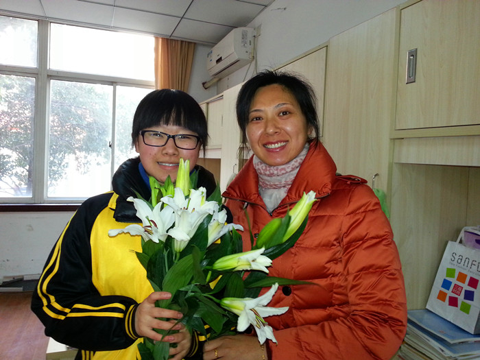 事前,志愿者们精心挑选了美丽的百合花,并按照年级为单位进行了分组。从上午大课间开始直至午自修,利用课间休息时间,志愿者代表们在各年级团总支的组织下,将一束束饱含深情的鲜花送到了每一位辛勤耕耘的女教师手中,并对她们无私奉献的崇高品格和敬业精神表示感谢,每位女教师脸上都洋溢着幸福而又甜蜜的笑容。