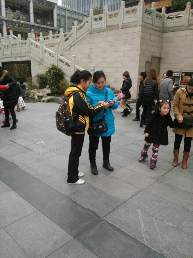 活动只有热心是不行的,当然还要灵活,要会随机应变。在这一点上我还真是“学到老,活到老”。一位妈妈带着她的孩子在走着,我班周之一上前送花,虽说话语简洁明了,不失热情与端庄,但那女子却无论如何不愿接受鲜花,一旁的许玲皓走上前去先是对她说先是对她解释为何送花:“不要也没关系,我们主要就是为祝您节日快乐,小朋友真漂亮这花给你好吗?”看似商量却早已把花给了那小孩,顺便给了周之一一个眼色,周之一便上前说“小朋友,你和妈妈说节日快乐,好不好?”小孩天真的看着妈妈,说着。那女子也终于有些平易近人,还为我们留下纪念!