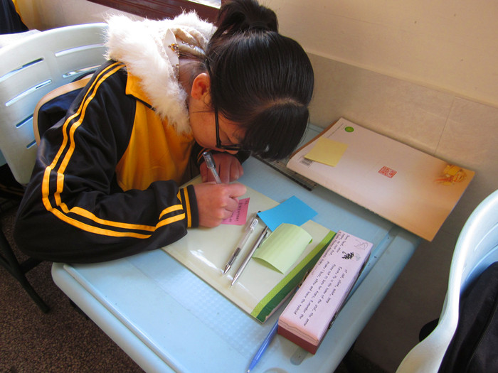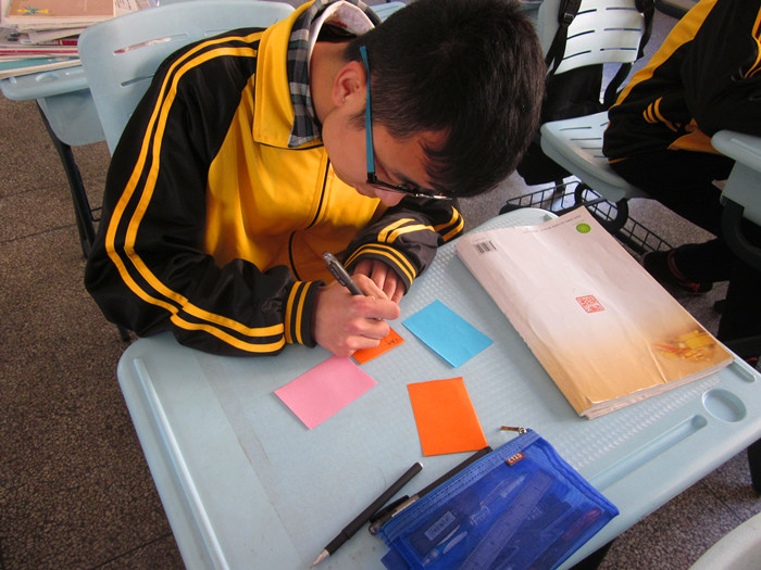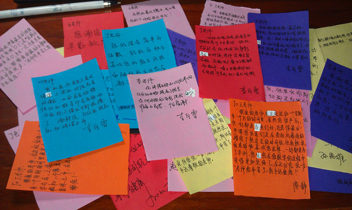 学测结束之后,高二7班的同学们准备给学测老师送上小礼物来感谢他们的付出。同学们利用课间的时间给每一位学测老师写上了一段话。