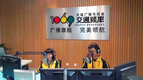 上周日,在团委曹老师的引荐下,我和钱佳一起来到了无锡市106.9交通频率电台的直播室和冬雪老师进行学习。