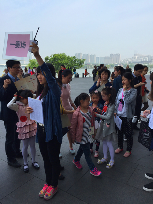 我们小分队的任务,是分为六个小组,按时间和参赛顺序分批引导参赛小选手们从一楼大门到五楼候赛区,然后每次十名选手引导至四楼赛场,等到比赛完毕,再引导回一楼大厅出口,交接给他们的家长。任务看似简单,实际操作起来确存在着一些问题,有些选手迟到晚到甚至不到,这需要我们认真核对选手信息并仔细的逐个点名,为了保证自己引导的这批比赛选手没有遗漏,每接一批选手,我们需要楼上楼下跑几趟,对体力是个严重的考验。其次我们还要维持好选手的纪律,防止他们在候场区喧哗影响比赛。