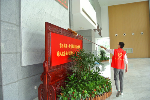趁着他们午休,我们志愿者们帮他们擦擦玻璃,拖拖大厅,浇浇花,打扫一下四周的环境,我们能做的并不多,只是想做些我们能做的以表我们对他们的尊敬和感激。最后,我们还向负责人要了宣传单去分发。只有我们每个人的防火意识提高了,火灾的发生才会减少,我们的生活才会更加美好。