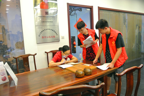 8月15日,以各团支部为单位,六高中的团员青年志愿者们走上无锡街头,积极开展“纪念抗战胜利70周年问卷调查”,希望以这样的形式唤起无锡市民对于抗战历史的关注。共计24个团支部分发了大约1200份问卷,诚然在活动过程中遭遇了保安的驱赶和路人的排斥、猜疑、白眼、恶语相向……志愿者们努力地保持微笑及耐心的解释都成了“传销新手段”,这让所有人一度灰心。不过,面对如此“高墙”,大家依旧没有放弃。看到路人拿着纸笔手足无措时,有志愿者二话不说立刻转身,当起了“人肉桌子”方便他写字;面对愿意配合,但视力不太好的老人,一位志愿者便拿起了问卷,将15道题从头到尾读给老人听,站了半小时都特别高兴;即使遇到人们的冷漠拒绝,大家仍会朝着他们的背影说一声谢谢……志愿者们不断尝试,寻找技巧,互相交流帮助,最终获得了许多人的接纳、认可和赞誉,所有的志愿者、参与活动的无锡市民们都有一个共同点,便是为回答不出问题而羞愧,为正能量的传播而感动,为70年前的抗战胜利而喜悦,为70年后的伟大祖国而骄傲!