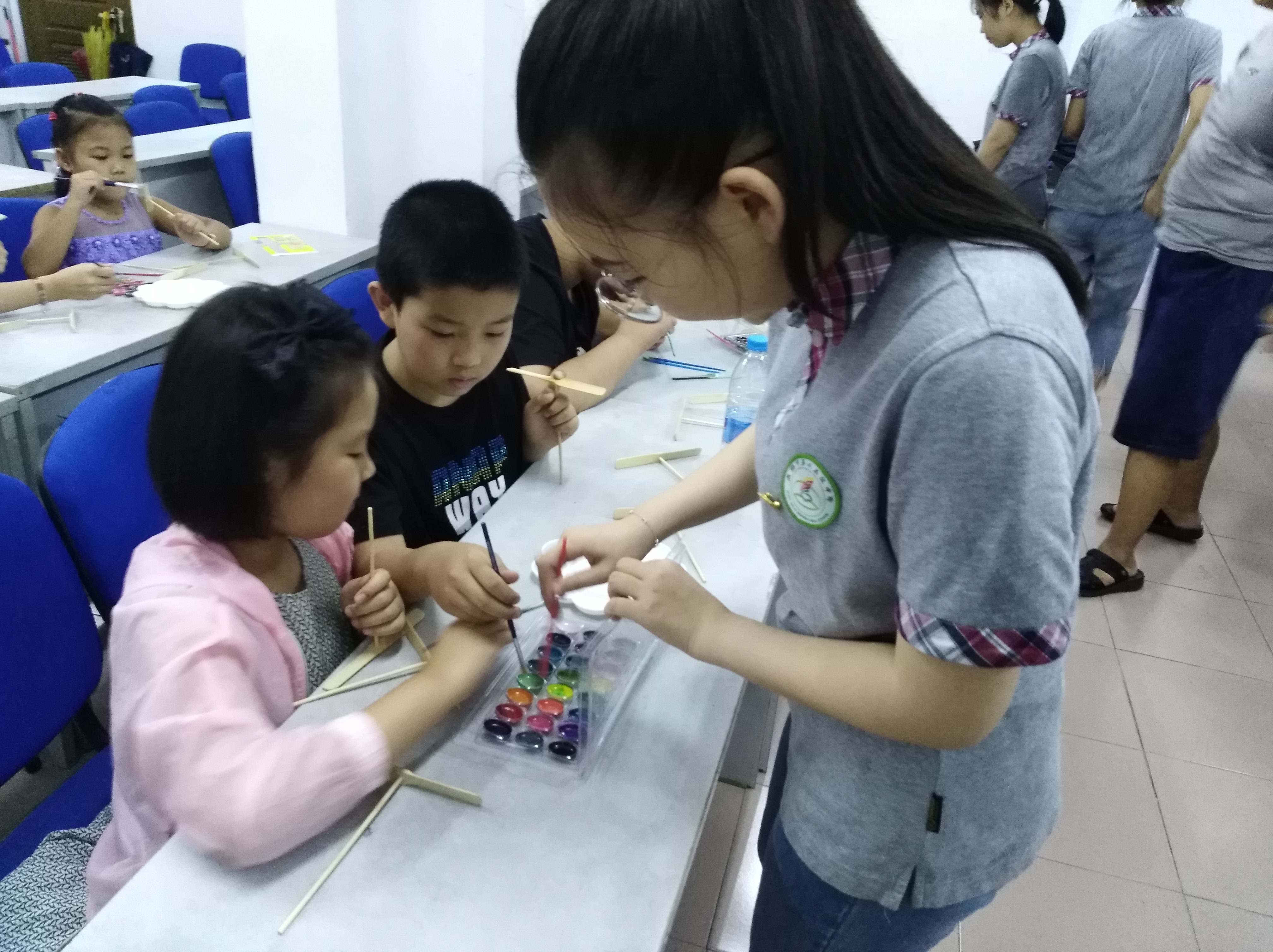 “当用到钉子戳洞的时候,我小心地拿起钉子,她很专注地盯着我的手,用很轻的声音说了三遍:‘姐姐小心手’。我心里一暖……有不少身边朋友问我:‘志愿活动没有酬劳,那去了还有什么意义?’我总是很坚定地回答:‘那是你们没有参与进来过,每次穿上红色的小马甲,我内心都是很自豪的!”
